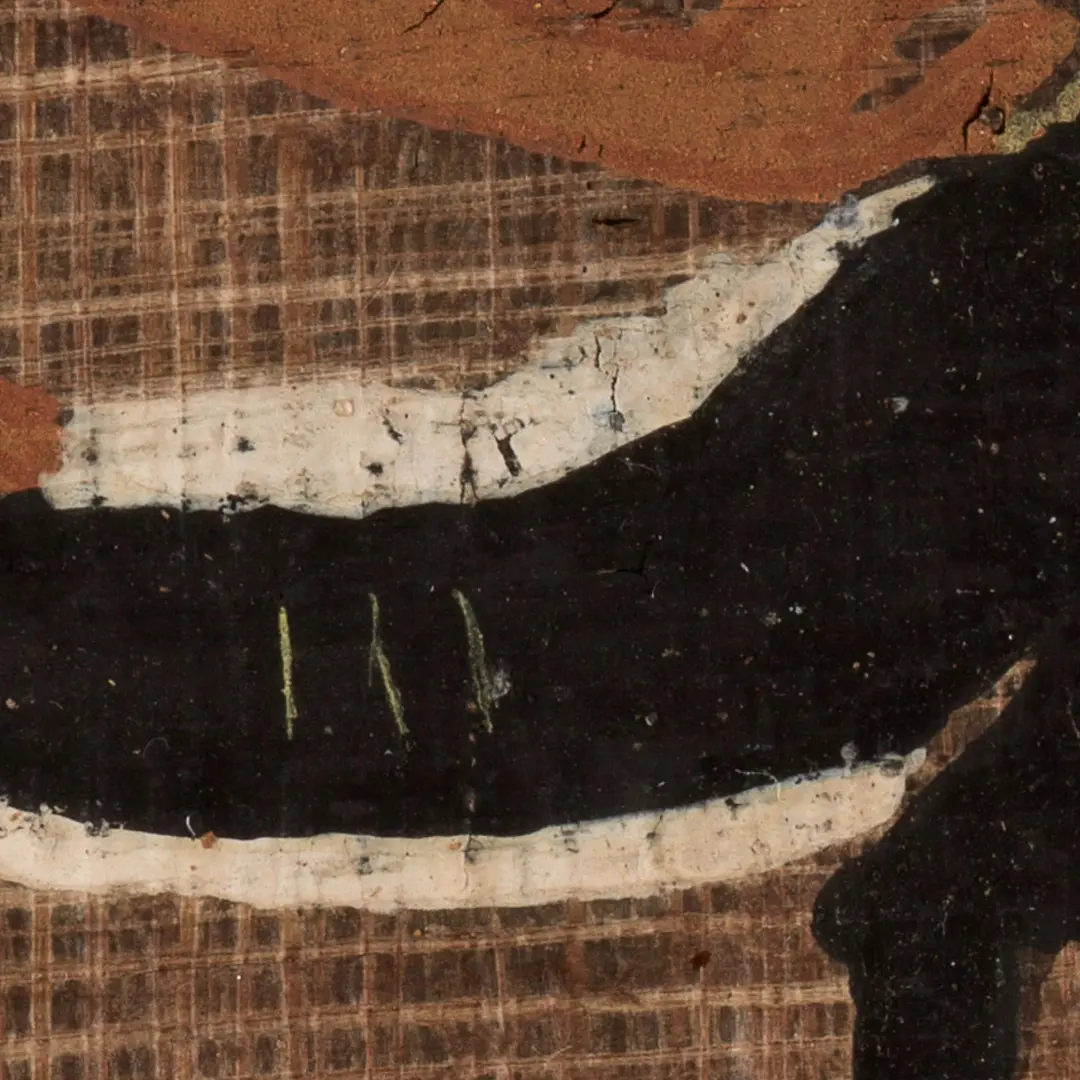その白い線を透過光赤外線写真を用いて分析したところ、ジャッカルの図像の一部の上から描き加えられており、形状を変えるための修正であったことが確認された。