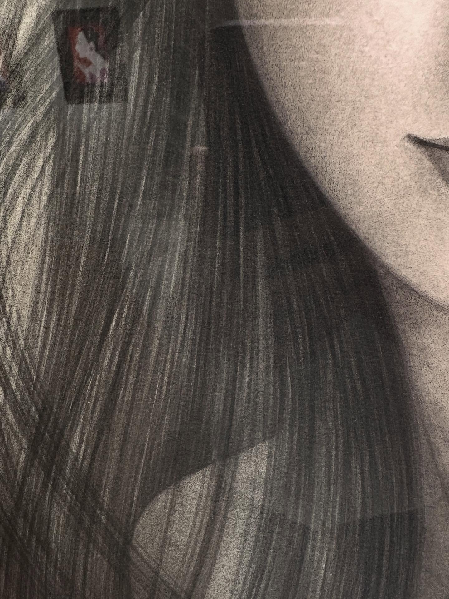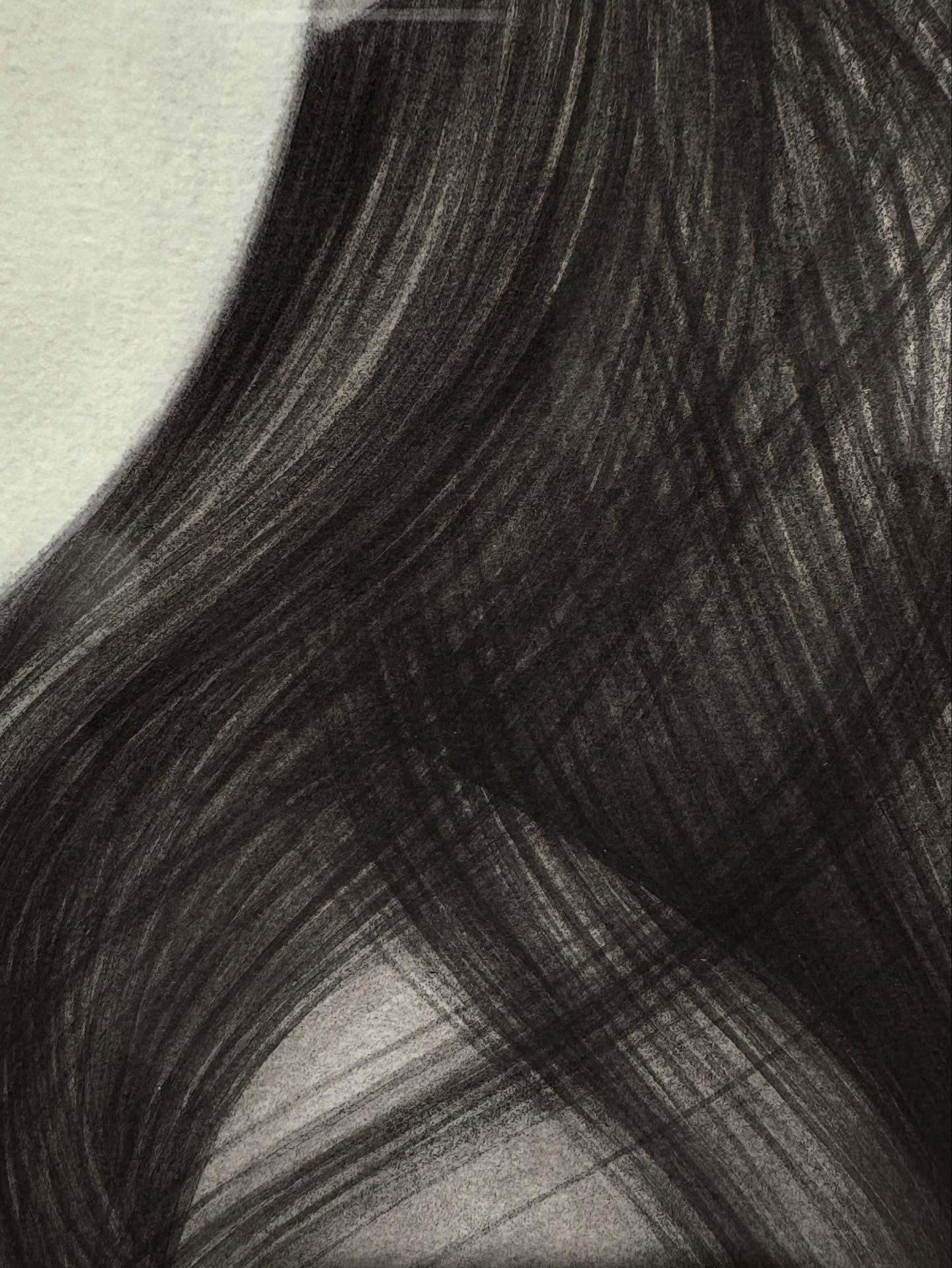 流麗な曲線で描かれた髪をよく見ると根本から毛先までほぼ同一の太さ。
