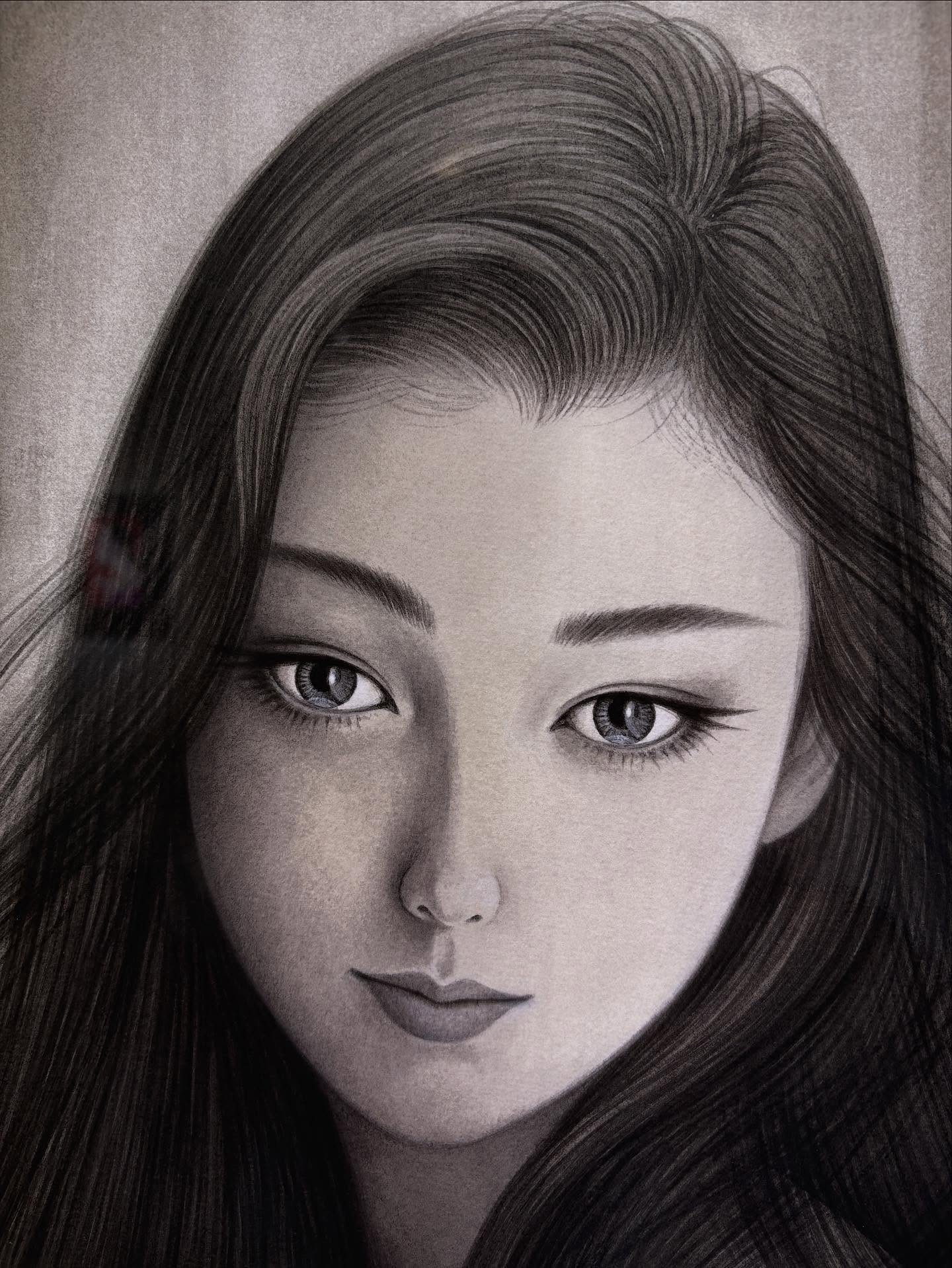 切長の目とはまた違った幼さや可愛らしさを表現されているパッチリな瞳の作品。