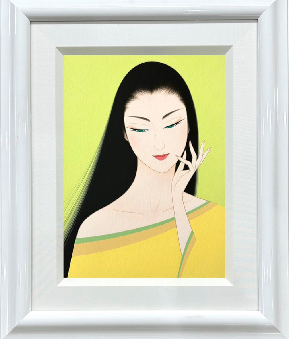 鶴田一郎が描く「おみなえし」は ミューズ(女神)にみたて、花の様に美しく秋の風に髪が揺れ、儚くも凛とした様もあり繊細な作品です。