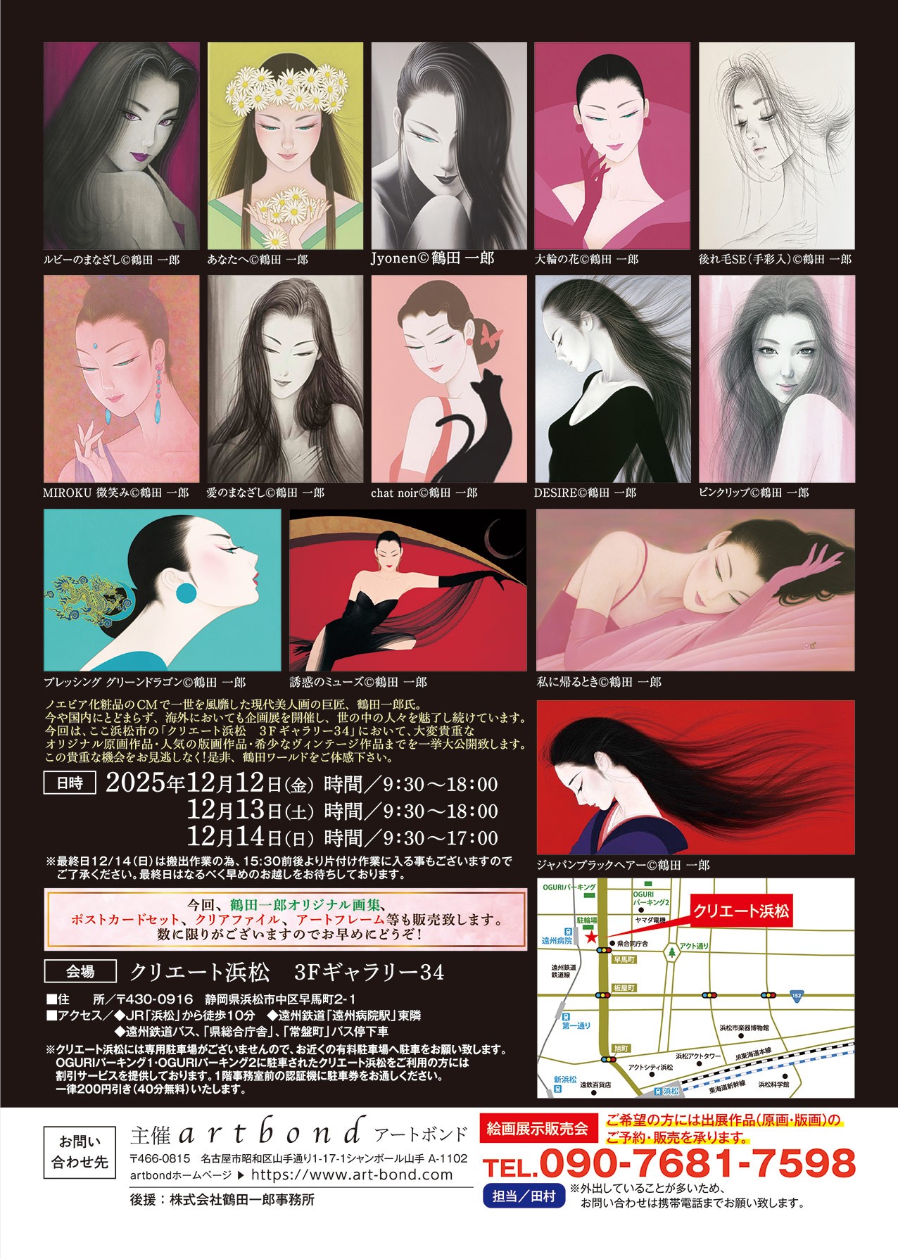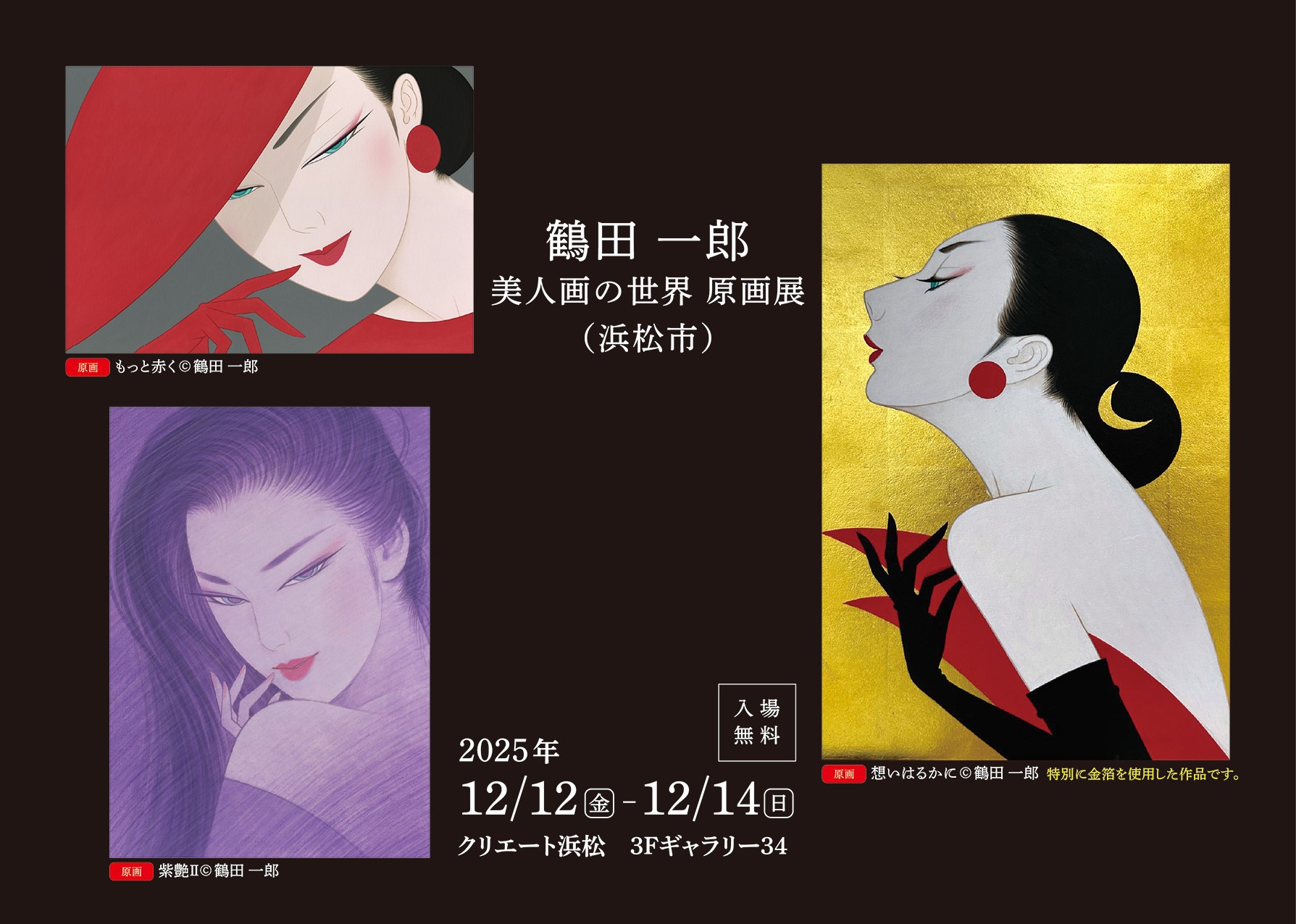 来月12月12日(金)から静岡県浜松市にございますクリエート浜松にて開催されます弊社主催 鶴田一郎美人画の世界原画展(浜松市)の案内フライヤーが完成しました。