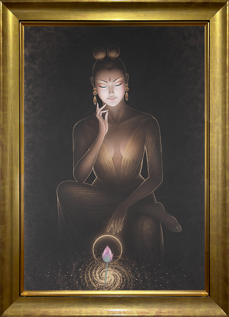 眼下には一輪の蓮、そしてその奥には宇宙が広がります。