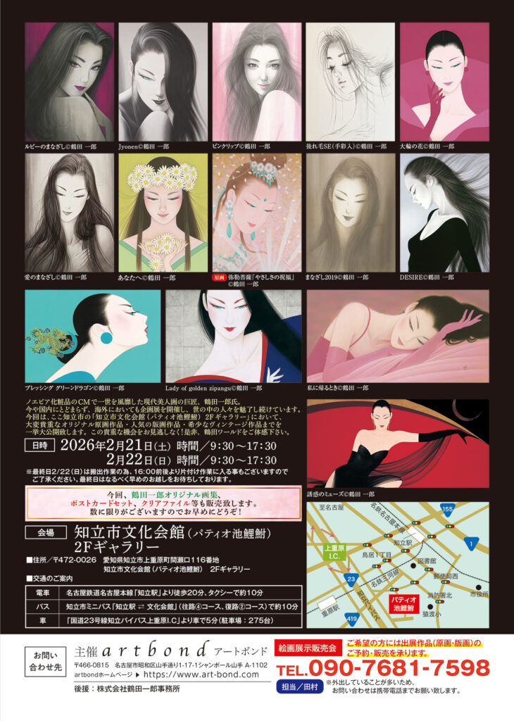 今月21日(土)から開催されます鶴田一郎美人画の世界知立展の広告フライヤーが完成しました。