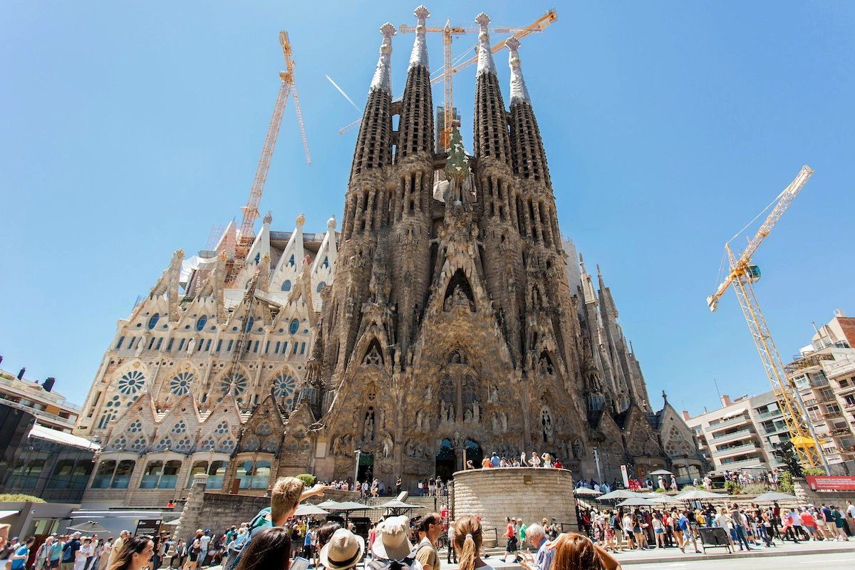 サグラダ・ファミリアは、凝った装飾のある尖塔とイエス・キリストの生涯を詳細に表した彫刻が施された象徴的な外観を持つ。